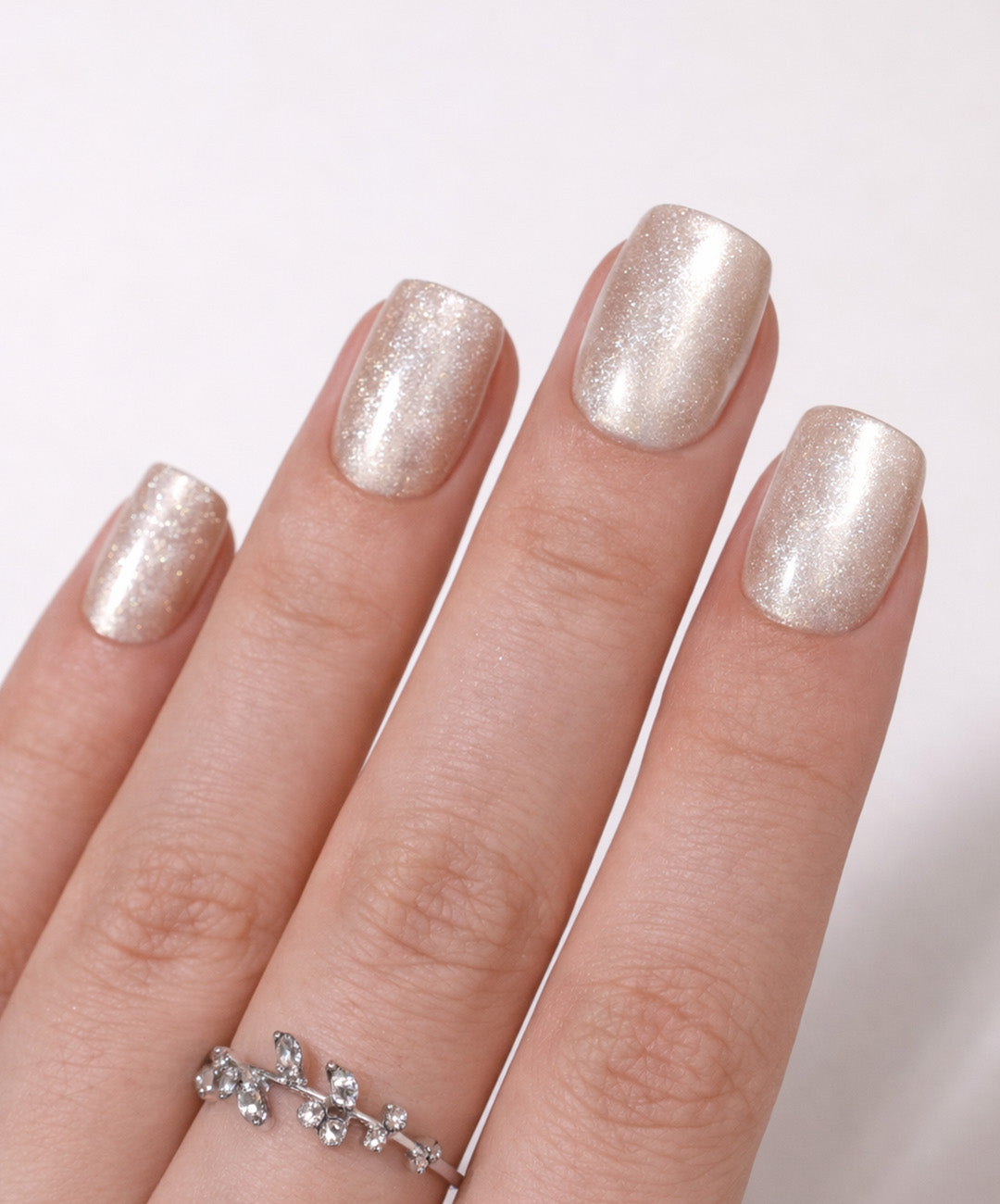 4. Plaats de nagel net onder de nagelriem voor een seamless look en druk 30–60 seconden stevig aan.